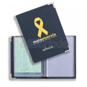 Carteira para documento de veículo produzida em material sintético capra com impressão em silk e relevo.